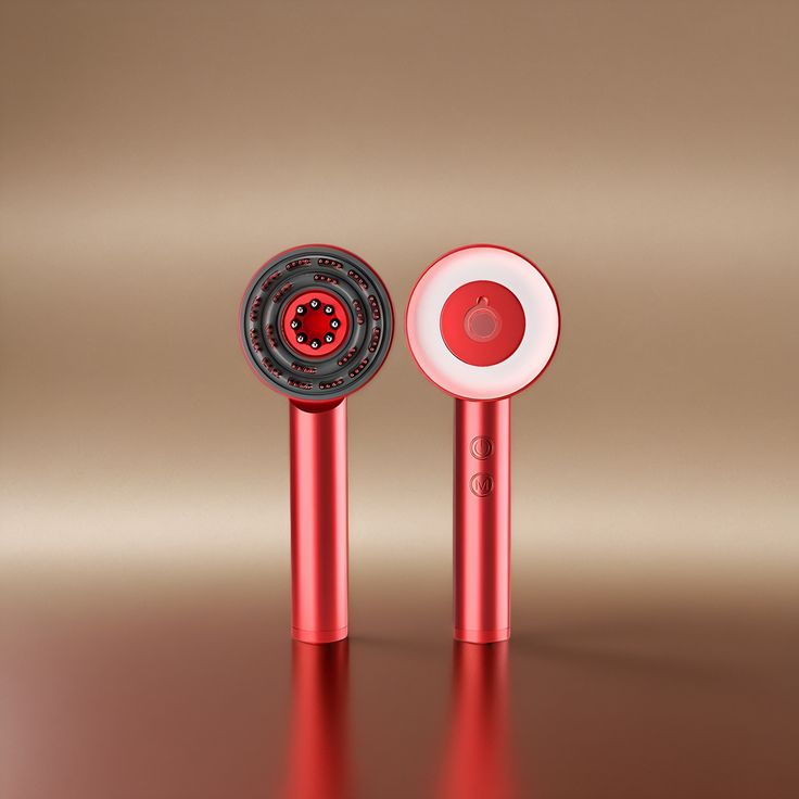 Red Glow Grow Hair Therapy Combs with LED lights on gold background